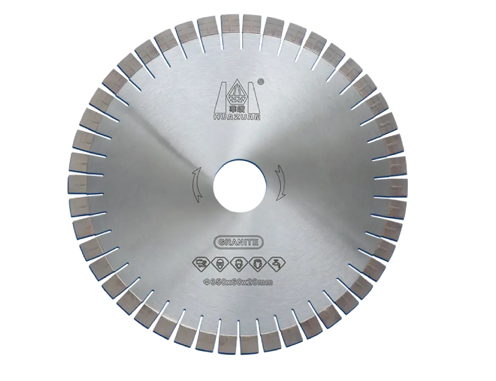 These blades feature a robust, tensioned steel core and wear-resistant bond. The hot-pressed or laser welded segments are formulated for cutting hard granite, ensuring consistent performance and long tool life in demanding factory environments.